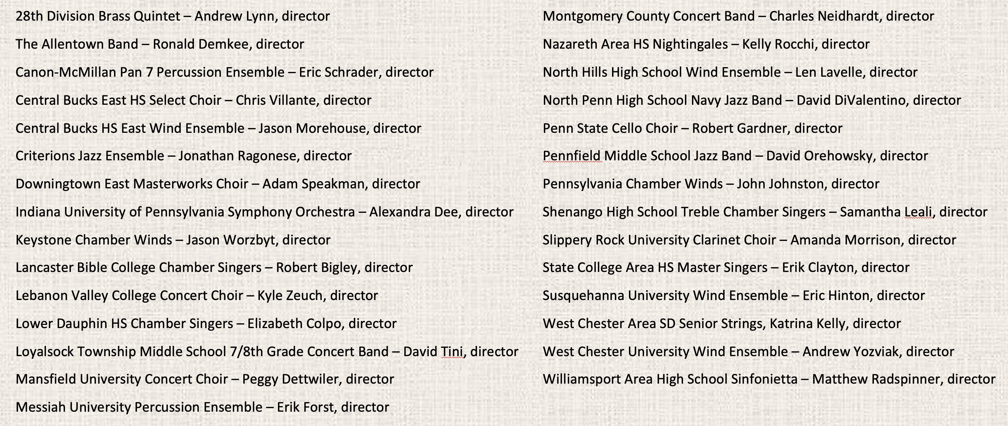 It’s still a little early for much additional detail. However, check out this MOVIE TRAILER preview of the 2022 Conference, featuring The Pennsylvania March composed by PMEA retired member Ron DeGrandis.