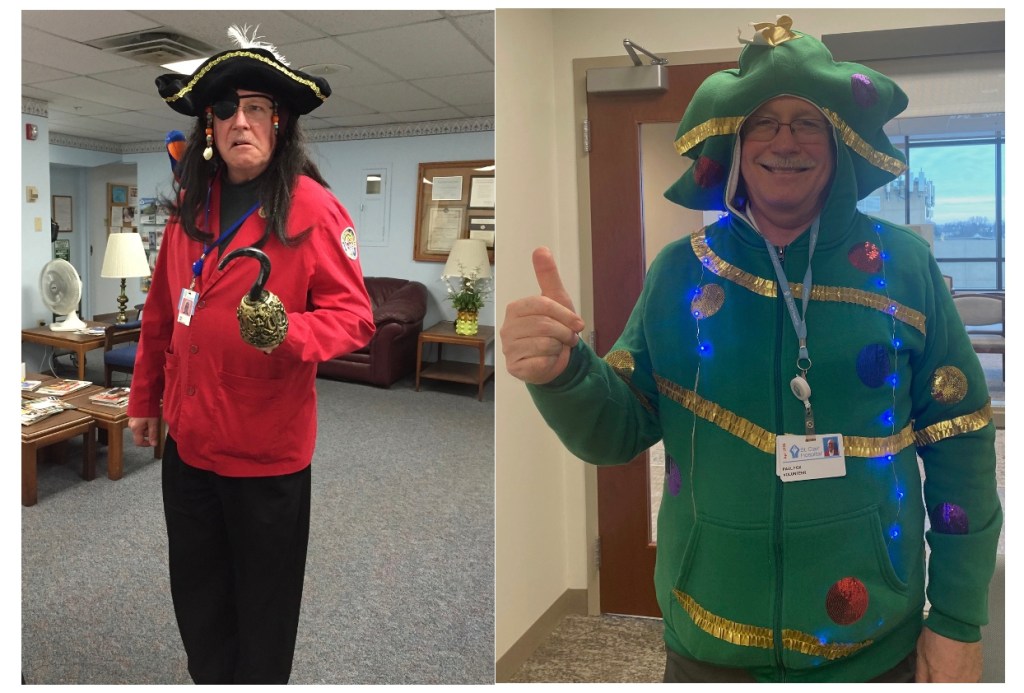 The male volunteers usually dress up in an all-red jacket (one giant candy stripe), but on occasion, I have been known to bring a costume… for Halloween or Christmas, to try to bring a little joy and good humor to the patients.