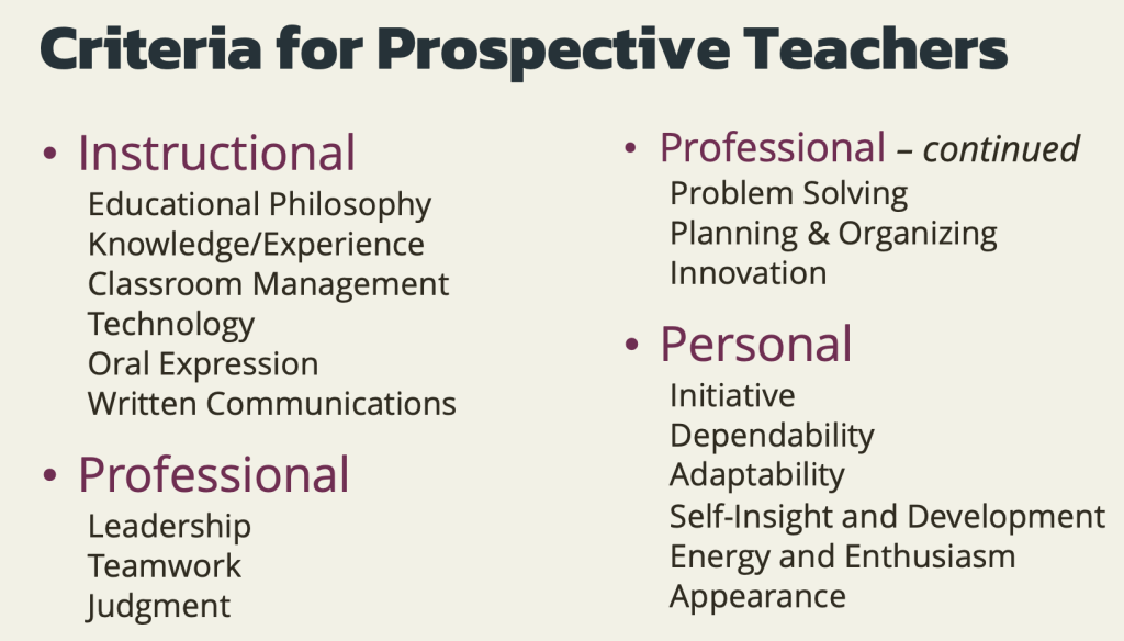 Soon it will time for graduates to enter the workforce… and boy, do we need you! By most accounts in PA and the surrounding states, we are experiencing a teacher shortage. School districts are seeking quality candidates to apply for their open positions. But, much of what happens in the job screening process seems to be influenced by chance. Collegiates, ask yourself: Are you truly prepared to market your experiences and abilities, share your brand and stories of your interactions with children in educational programs, and relate positive anecdotes of your teaching, problem solving skills, and other professional attributes? I may have been a little Type-A when I first applied for those music teaching positions back in 1978, focused on saturation publicity and persistence, and organized with a large paper portfolio of past experiences, but I was clueless in responding to those tricky interview questions and what administrators actually wanted to see in prospective new members of their staff.