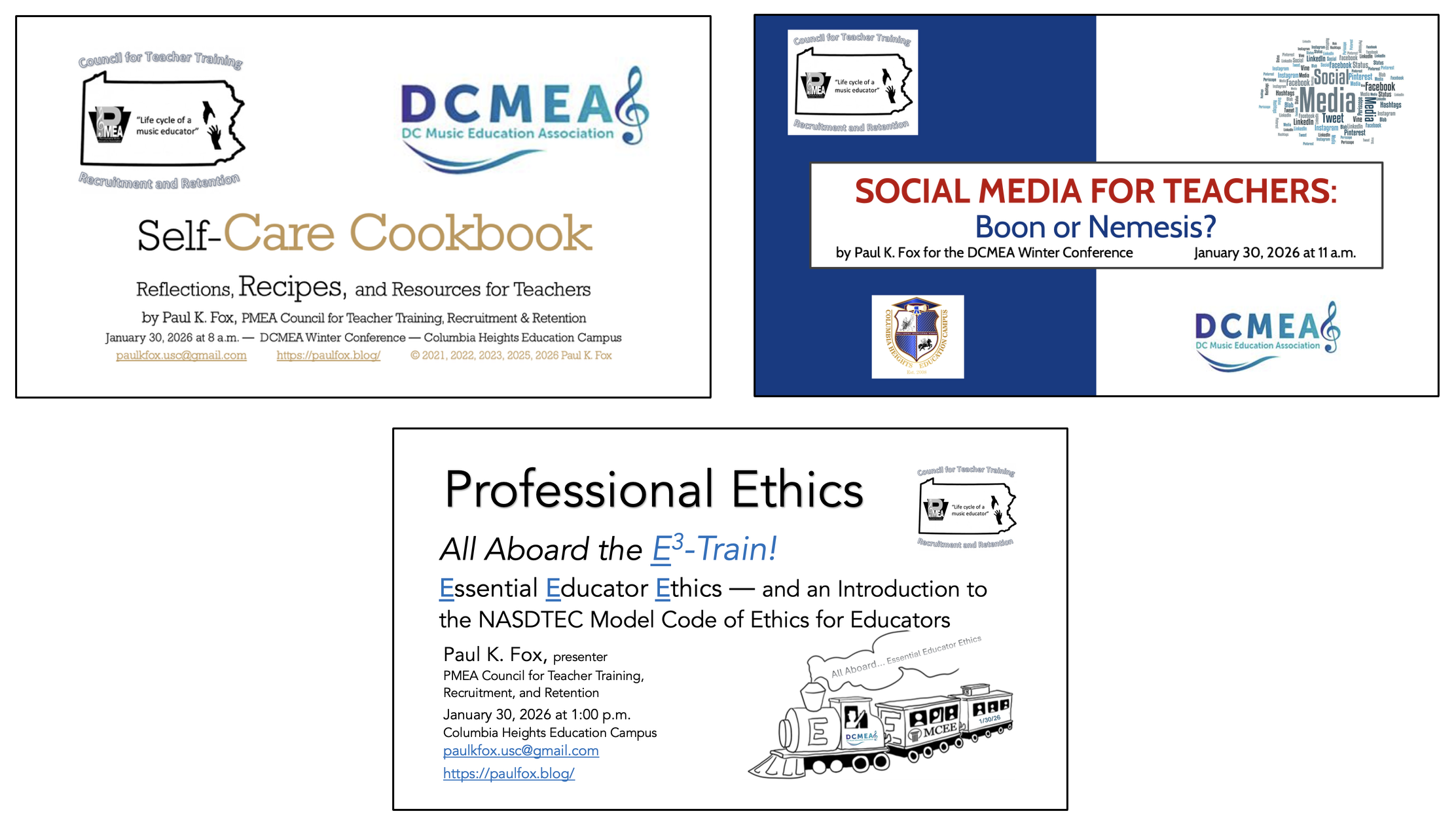 It probably will not come as a surprise to readers of this blog that my favorite professional development venue is the Pennsylvania Music Educators Association Annual Conference… of which I have missed perhaps only three of these “celebrations” over nearly five decades of involvement in music education, all starting with my HS participation in PMEA All-State Band (tuba) and PMEA All-State Orchestra (viola). PMEA Annual Conference is the main event providing “state of the art” keynoters, clinicians, educators, expert innovators, performers, curriculum designers, and supportive vendors, and more than any other source, probably has had the greatest influence on sustaining my growth as a music educator. Like many other “diversified colleagues,” throughout my career I had to go through transitions of teaching new grade levels and content specialties (although orchestra and strings were my “thing,” new job assignments required retooling and fostering renewed skills in music theory, technology, choral, musicals, and even elementary band)… and PMEA’s professional development offerings were always my “go to!”